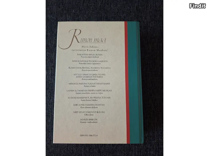 UUTTAVASTAAVA RUNOKIRJA RUNONMAA Suomalaisten Toiverunoja yli 500 sivua UPEITA RUNOJA KIRJA ON KUIN UUSI TÄSTÄ VAIKKA LAHJAKSI PUKINKONTTIIN RUNOISTA PITÄVÄLLE HINTA 10€