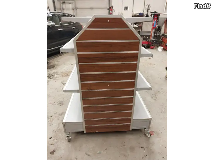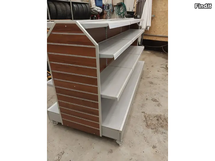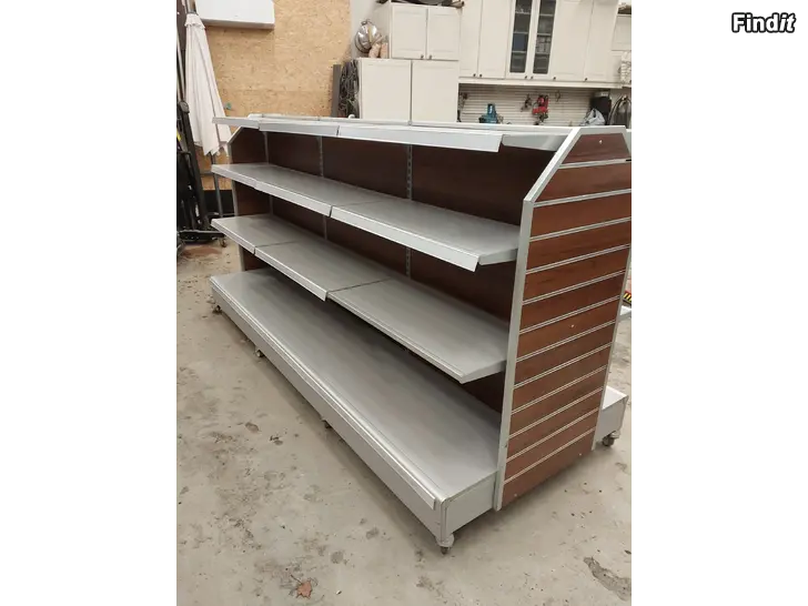 Stabil kvalitetshylla på hjul, mått: längd 278 cm, höjd 145 cm, bredd 110 cm. Finns ännu en till, dock aningen kortare. Nedmonterad i delar så lätt att flytta.