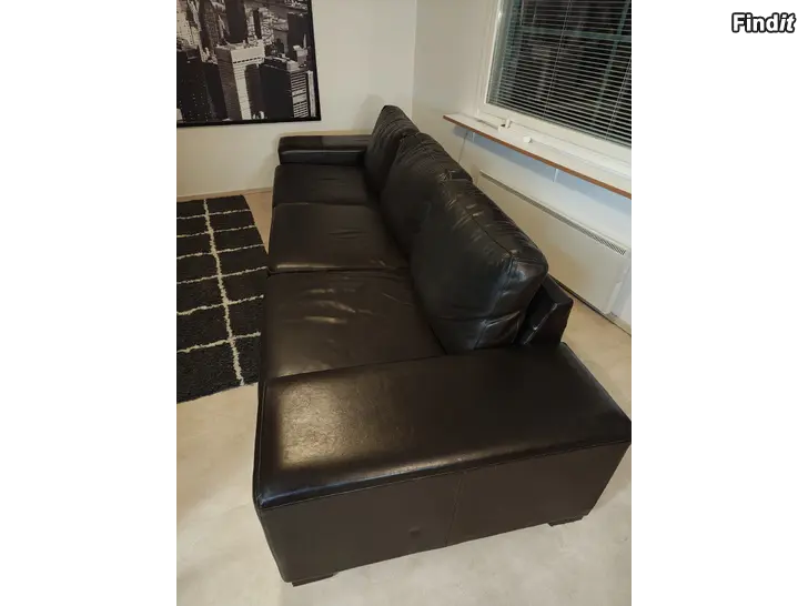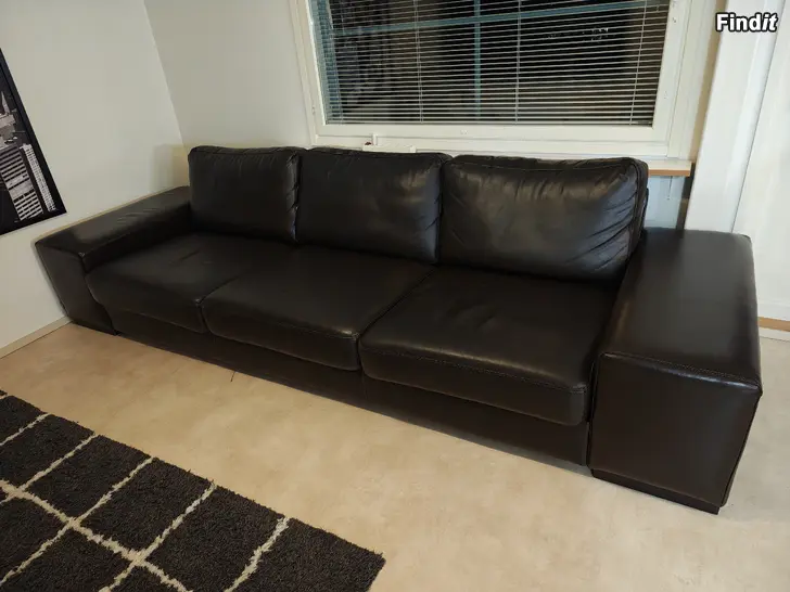 Fin och fullt fungerande helskinnssoffa. Färgen är mörkbrun. Märke Bellus. Nypris var över 4 500 euro. Kommer från ett hem utan husdjur. Det finns vissa spår av användning i lädret, men de kan troligen försvinna med behandling. Endast avhämtning. Ge ett bud.