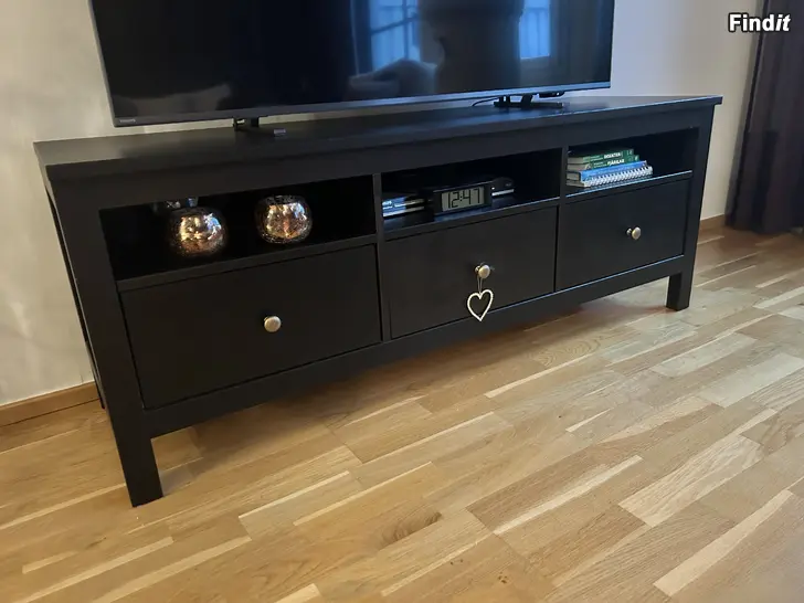 Fungerande och stilig brunsvart Hemnes Ikea TV-bänk säljes. Några spår av katt finns.