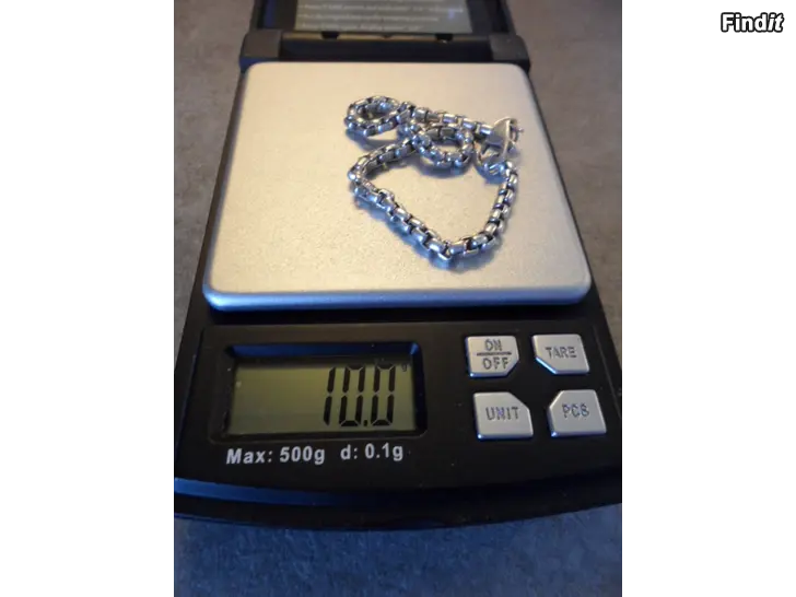 Hopeinen rannekoru pituus 20,8cm, leveys n.3,5-4mm, paksuus 3,5-4mm , paino 10g