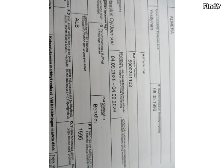 Nissan Almera N15 GX 1.6 TWIN CAM bensamoottorilla jossa jakopää ketjulla. Ajoaika 4.9.2026 Koukku Ehjä tuulilasi Ei pala vika valoja. Vero 1 erässä maksettuna noin 250€ Korissa jo näkyy ikä. Kirjallisuutta ja avain x 2 5/1996 mallia. Heti ajoon.