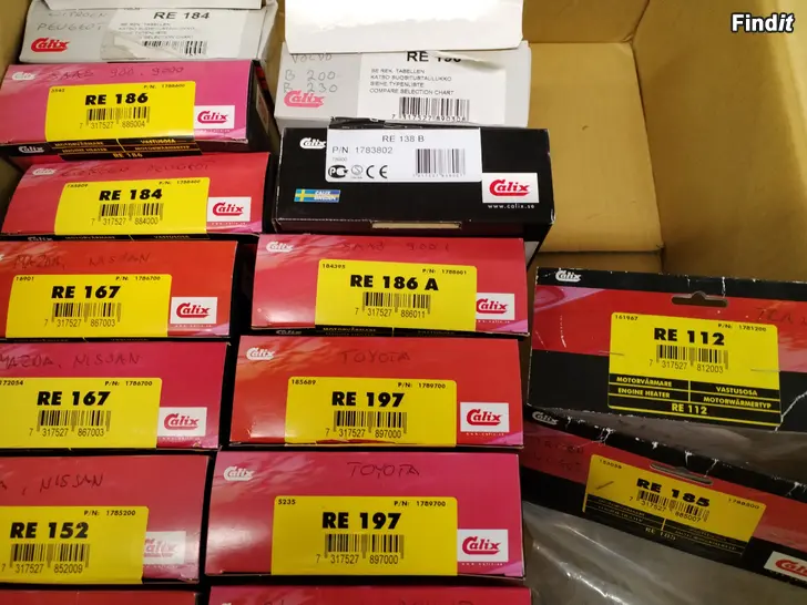 Kuvan lohkolämmittimen uusi vastus. Näkyvillä merkit ja mallit. Hinta 30e. Lisäksi n. 10 muuta mallia eri autoihin,kaikki Calixia ja hinta sama 30e/kpl.