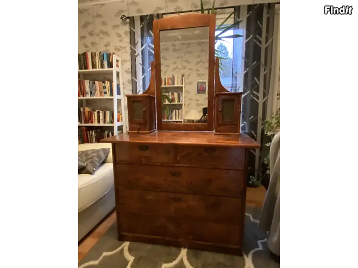 Gammal spegelbyrå i gott skick br.100cm djup48,5 höjd med spegel 173 cm