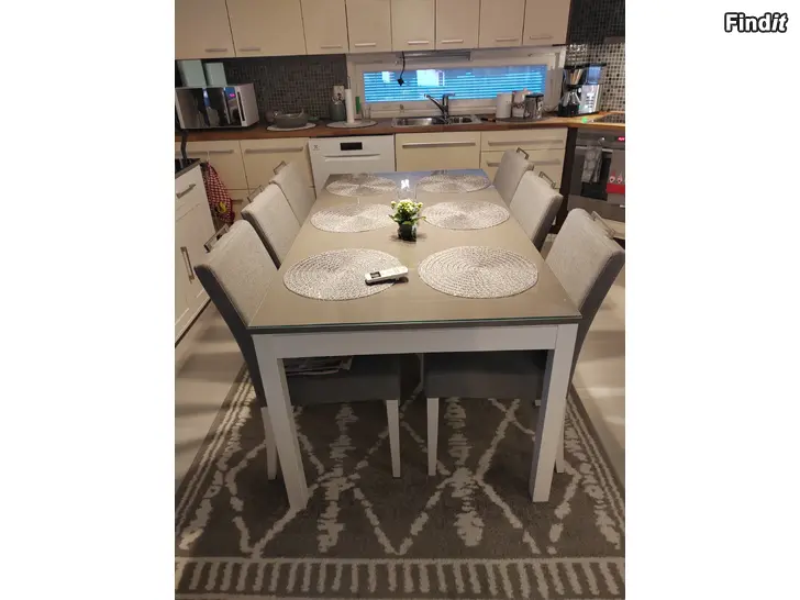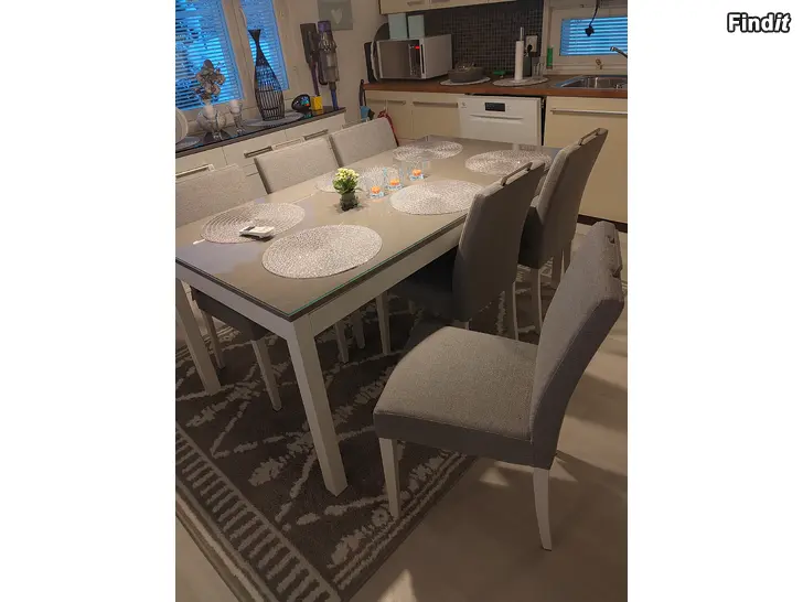 Hieno ruokailuryhmä , lasikannella, harmaa/valkoinen