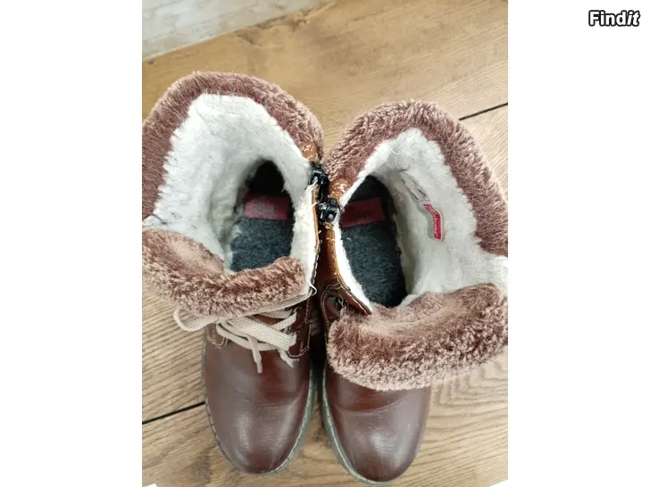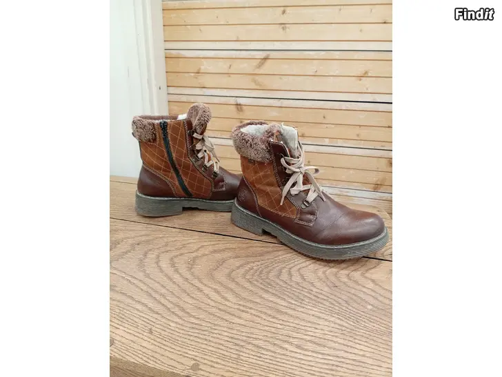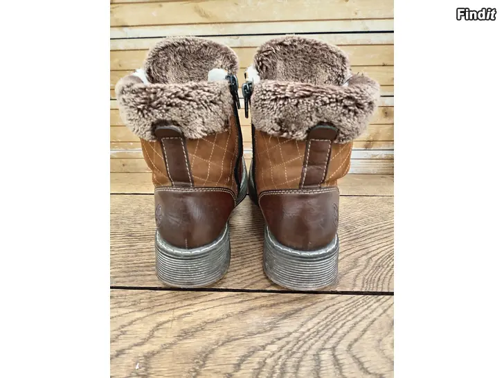 Ruskeat hyväkuntoiset Rieker nahkaiset talvikengät kokoa 39, sisämitta noin 25cm. Villavuori.