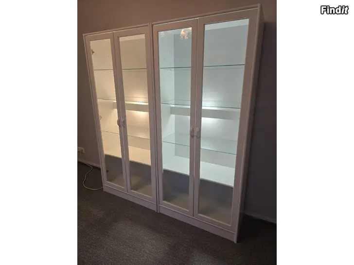 Vitrinskåp i bra skick. Måtten 78x35x173cm. 2 st. Pris 75€ får båda. Finns i Vasa.