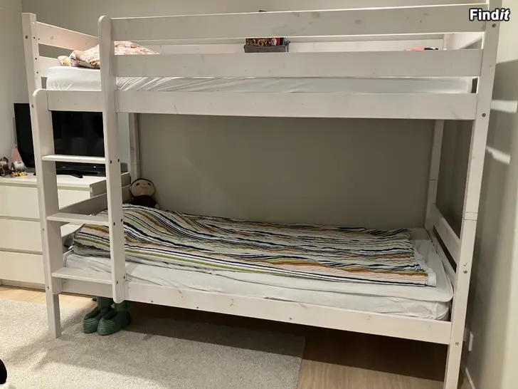 Säljes en högsäng med måtten 90x200 på madrasser och sängens höjd 168.