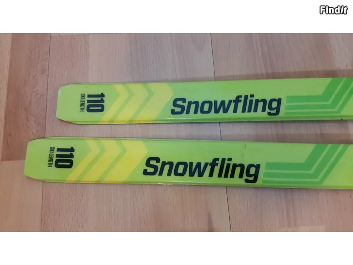 Stigan Snow Fling -suksisetti, jossa murtomaasukset sekä sauvat. Suksia ei tarvitse voidella ja ne on varustettu tukevilla siteillä, jotka ovat säädettävissä kokoihin 28-36. Sauvapituus: 85 cm Suksipituus: 110 cm