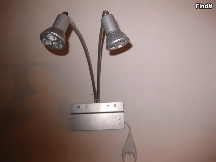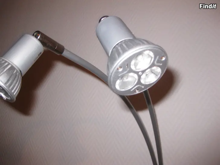 Loveschall LED-spotar 4 enheter, typ Railspot Transformator 220 - 240 V AC / 12 V DC 30 W 2 spotar per enhet Spottar på lätt böjt rörfäste, ca 40 cm från basen Gjorda att kedjekopplas Pris för allt tillsammans