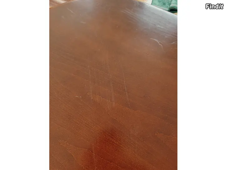 Tungt och stabilt soffbord. Finns små skråmor, men inget som stör användningen. Färg: lite röd brun.
