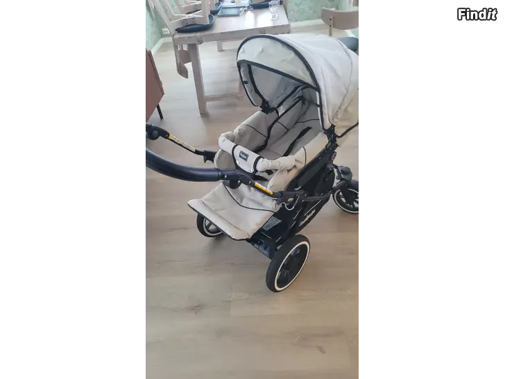 En toppenfin barnvagn köpt ny 2021 från barnvagnsbutik och använd av 1 barn. Alltid förvarats inomhus. Hel och ren, inga skavanker eller slitningar syns. Regnskydd, extra mygg och solskydd med.