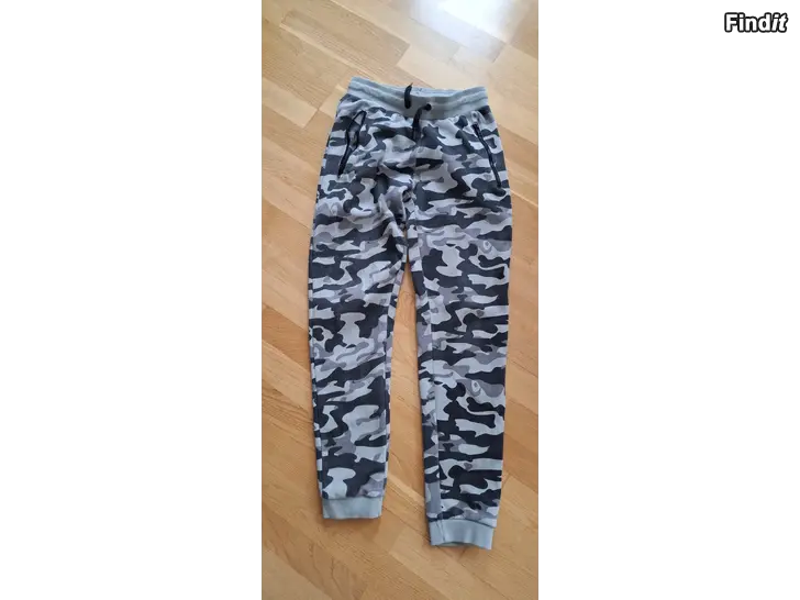 Säljes ett par collegebyxor i grå-svart kamouflage färg. De är lite använda. Storlek 160. Kan även fås till Vasa enligt överenskommelse.