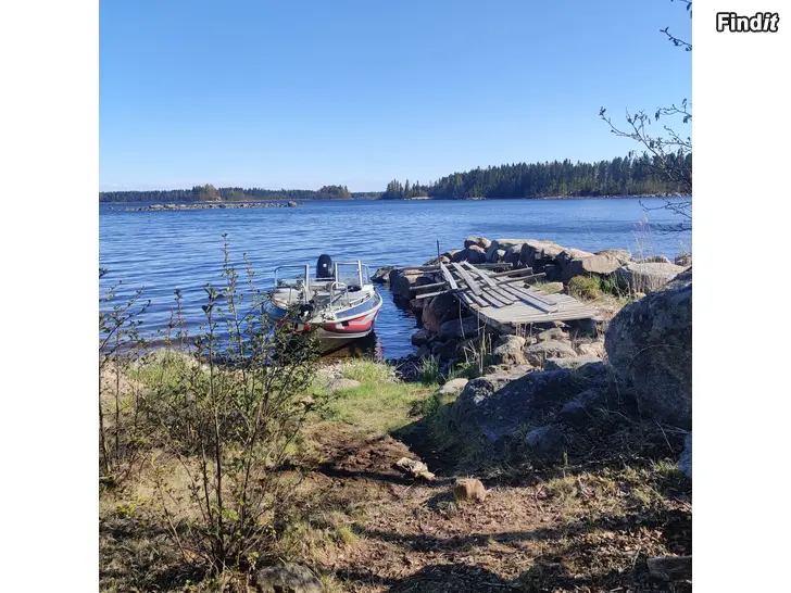Stor tomt med liten stuga och ladu på fantastisk holme i væsterhankmo skjærgård. 10 minutter med båt från Kaste båthamn. Det fins en byggerett på holmen.
