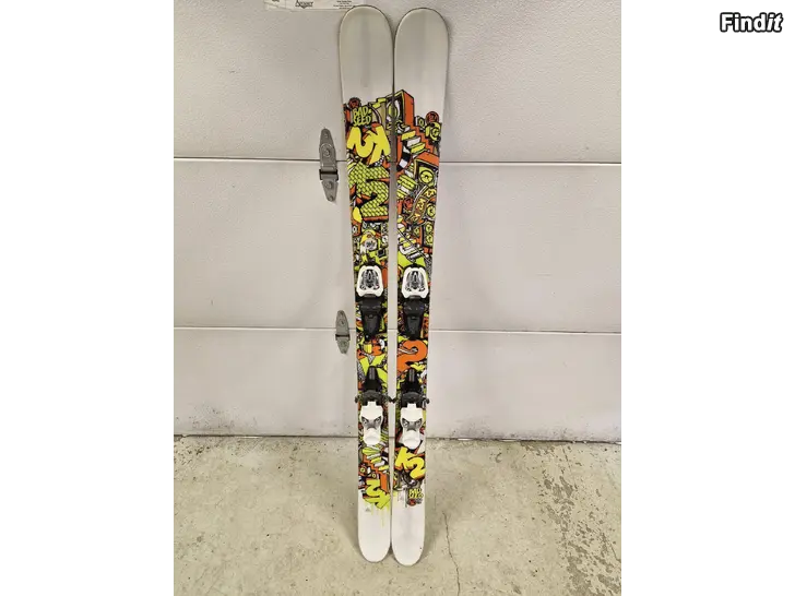 Använda twintip slalomskidor med bindningar. 149 cm långa.