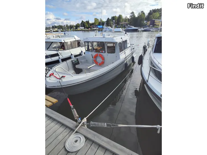 Tästä hyvä ja monipuolinen puoliliukuva vene vaikka retkeilyyn, yhteysveneeksi tai taksiveneeksi. Makuutilat 3-4 henkilöä koosta riippuen. Jääkaappi ja hella löytyy.
