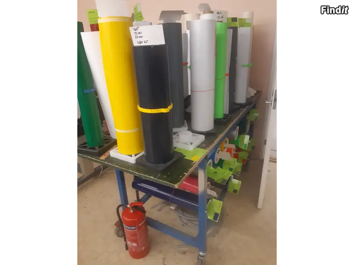 Högkvalitativa Chemicas Hotmark textil transfer folie för logon och texter mm. på kläder. Hela partiet inklusive bord med hållare för rullar. Tel 040 702 87 24.