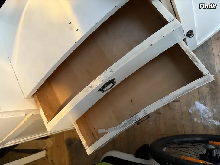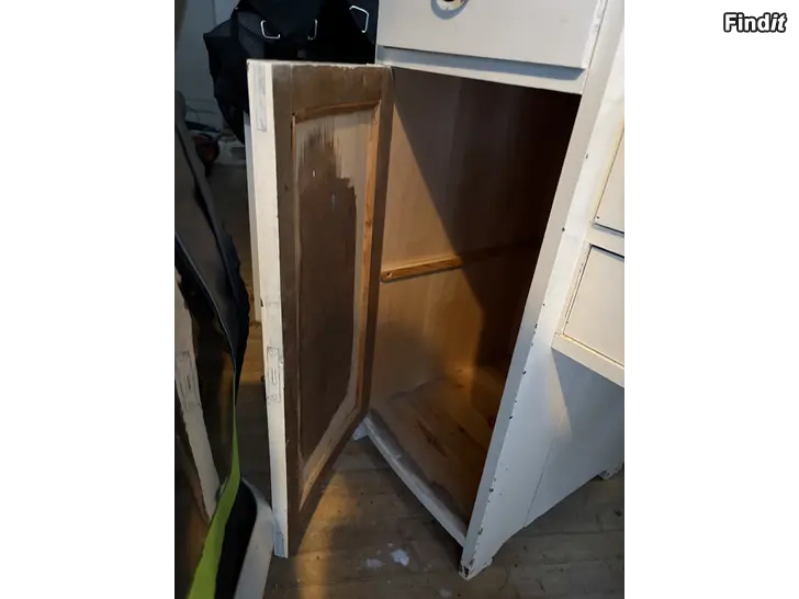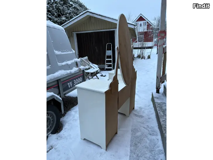 Säljes gammaldags sminkbord. Målfärgen nött på en del ställen, annars är skåpet i helt bra skick. Lådorna och dörrarna hela och fungerar.