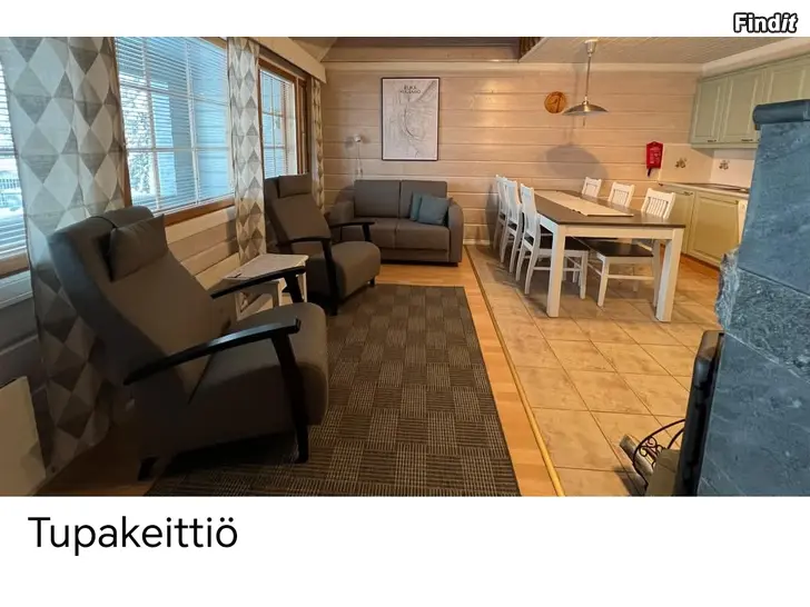 Vuokrataan loistavalta sijainnilta Rukalta 78 neliöinen mökki paritalo viikko 12. Kiinteät nukkumapaikat kuudelle, kaksi makuuhuonetta, tupakeittiö, wc, sauna ja parvi.