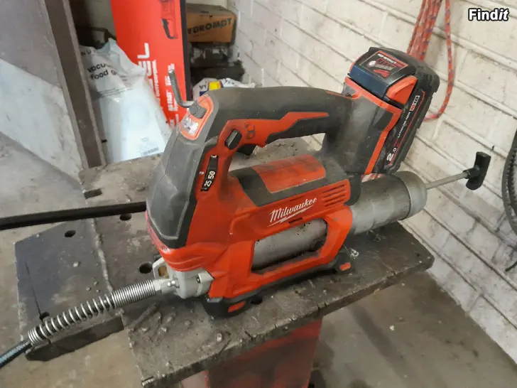 Milwaukee laddningsbar vaselinpress inkl. batteri + laddare, Bp. 180€.