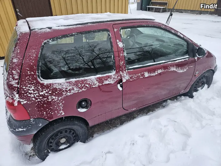 Renault Twingo 2002 till salu. Ej besiktad, avställd. Senaste godkända besiktningen 3.3.2023 och har stått avställd sedan dess. Bilen behöver lite småfix innan den blir godkänd i besiktningen. Säljs i befintligt skick.