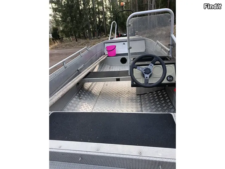 EI vuoda, hitsattu malli ja muutenkin ehjä, iän tuomaa kulumaa. Kyljessä näkyvät jäljet syntyivät kun naapurin vieressä ollut vene pääsi kolhimaan, eivät ole syviä, kosmeettinen haitta.