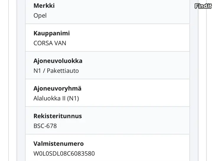 Rekisteröity pakettiautoksi.