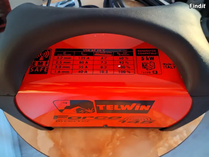 Italialaisen Telwinin yksivaiheinen, pienikokoinen ja kevyt invertteri puikkohitsaukseen. Nopeus ja säätötarkkuus takaavat erinomaisen hitsaustuloksen kaikentyyppisillä hitsauspuikoilla. Invertteritekniikan ansiosta kevyt ja helppo liikutella. Vakaa hitsausvirta päävirran vaihtelusta huolimatta. Hitsausvirta-alue 10-130 A. Sytytyspulssi Hot Start, dynaaminen valokaaren säätö Arc Force ja tarttumisenestotoiminto Anti Stick. Kätevässä muovisalkussa kaapelit, maski ja kuonahakku. Tämä on uusi. Jäänyt käyttämättömänä makaamaan varastoon. Nouto Vaasan keskustasta.