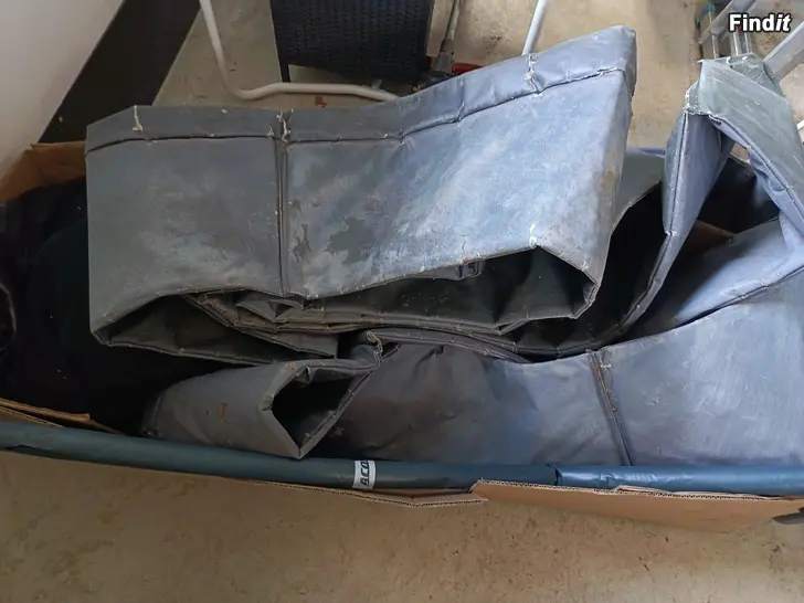 Kvalitets Acon studsmatta med flera år bakom sig. Själva mattan och skyddsnätet förvarats inomhus vintertid, bara stommen som stått ute. Själva mattan i bra skick, men skyddskanten och skyddsnätet har sina skavanker, dessa går ju dock att hitta som reservdelar. Studsmattan går nog ännu att hoppa på flera somrar ännu. En ny acon kostar över 1000€ första bilden lånad från Acons hemsida då studsmattan är nedmonterad.