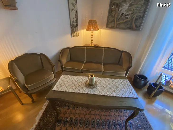 Ett jättefint Rosenholm möblemang, soffa, fåtölj och bord i toppskick och dessutom bekväma att sitta/vila i..
