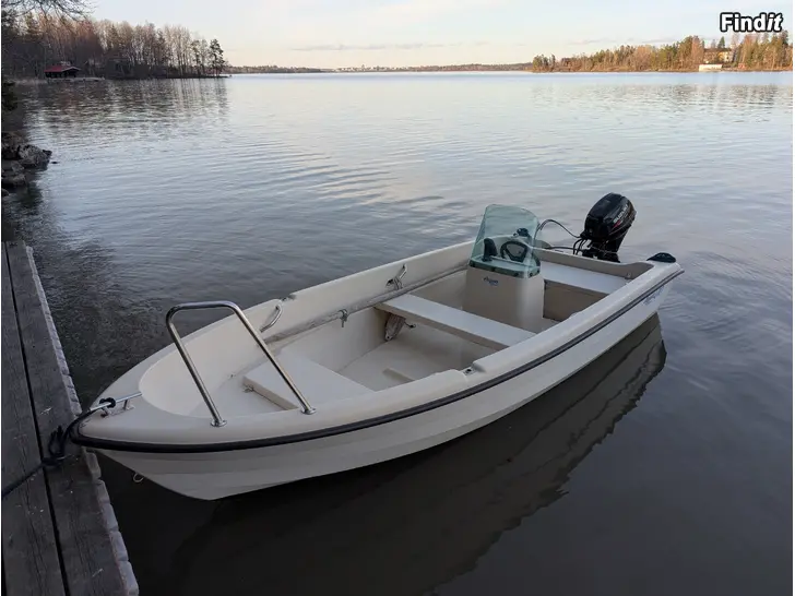Lasikuitu eli lujitemuovivene. Juuri huollettu. Sähköstartti ja sähkökippi.