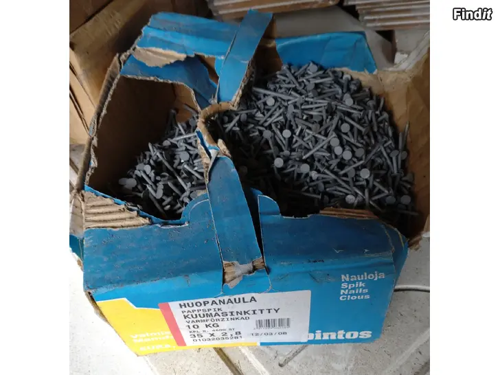Hieman vajaa, arviolta n. 8 kg kyseisiä kuumasinkittyjä huopanauloja, hinta 35 koko loota, ovh 130, 50e + lähetyskulut. Lisätietoa linkistä: https://www.rakentajanpysakki.fi/p/huopanaula-35x2-8-10kg-kuumasinkitty