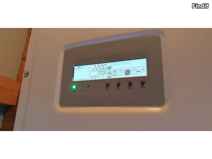 Myytävänä käytetty hyvässä kunnossa toimiva aurinkovoimala 3.25 kW paneelit ja Abb trio invertteri - 5.8 kW 3-vaiheinen. Aurinkovoimala on kytketty Vaasan sähköön. Aurinkovoimala on ollut käytössä noin 7 vuotta. Aurinkovoimala tällä hetkellä asennettu taloon. Nouto Sepänkylästa / Mustasaari.